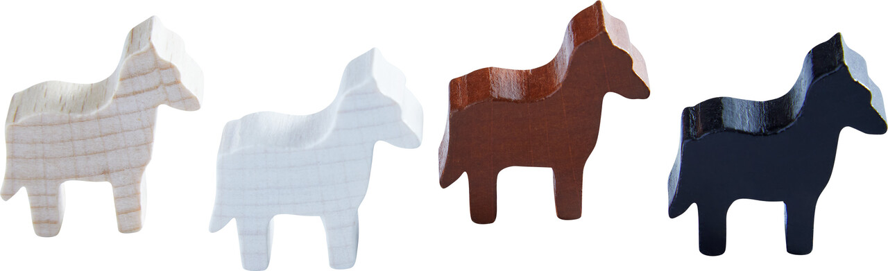 Versió mini en caja de lata del juego de recorrido y recolección. Se trata de ser los primeros/as en llevar a su caballo desde la dehesa a su box correspondiente, recogiendo en el camino todos los objetos indicados en la tarjeta. Para ello, por turnos, se lanzan los 2 dados y se decide si avanzar o si coger un objeto.