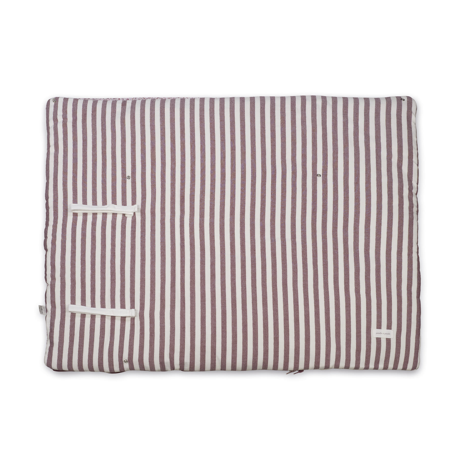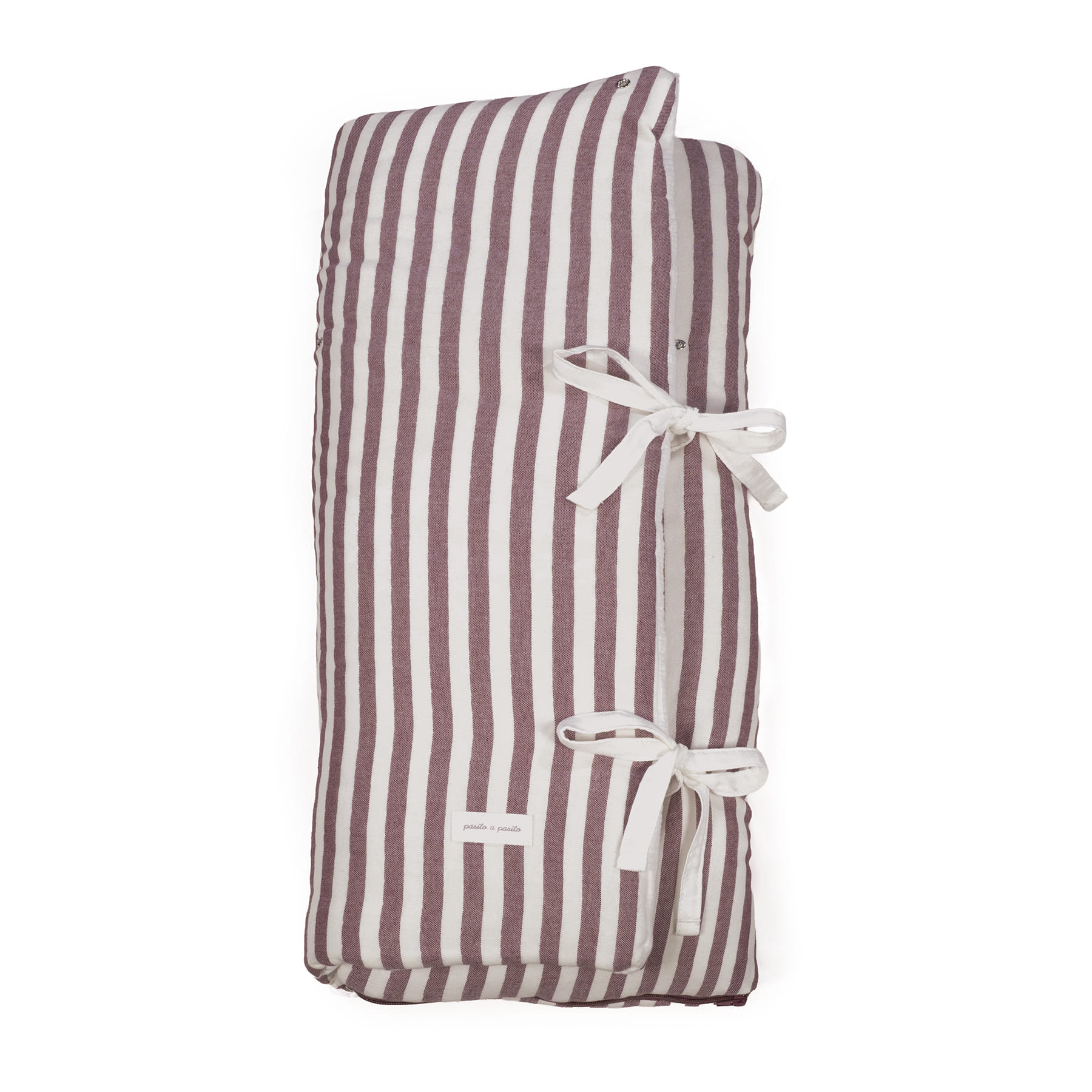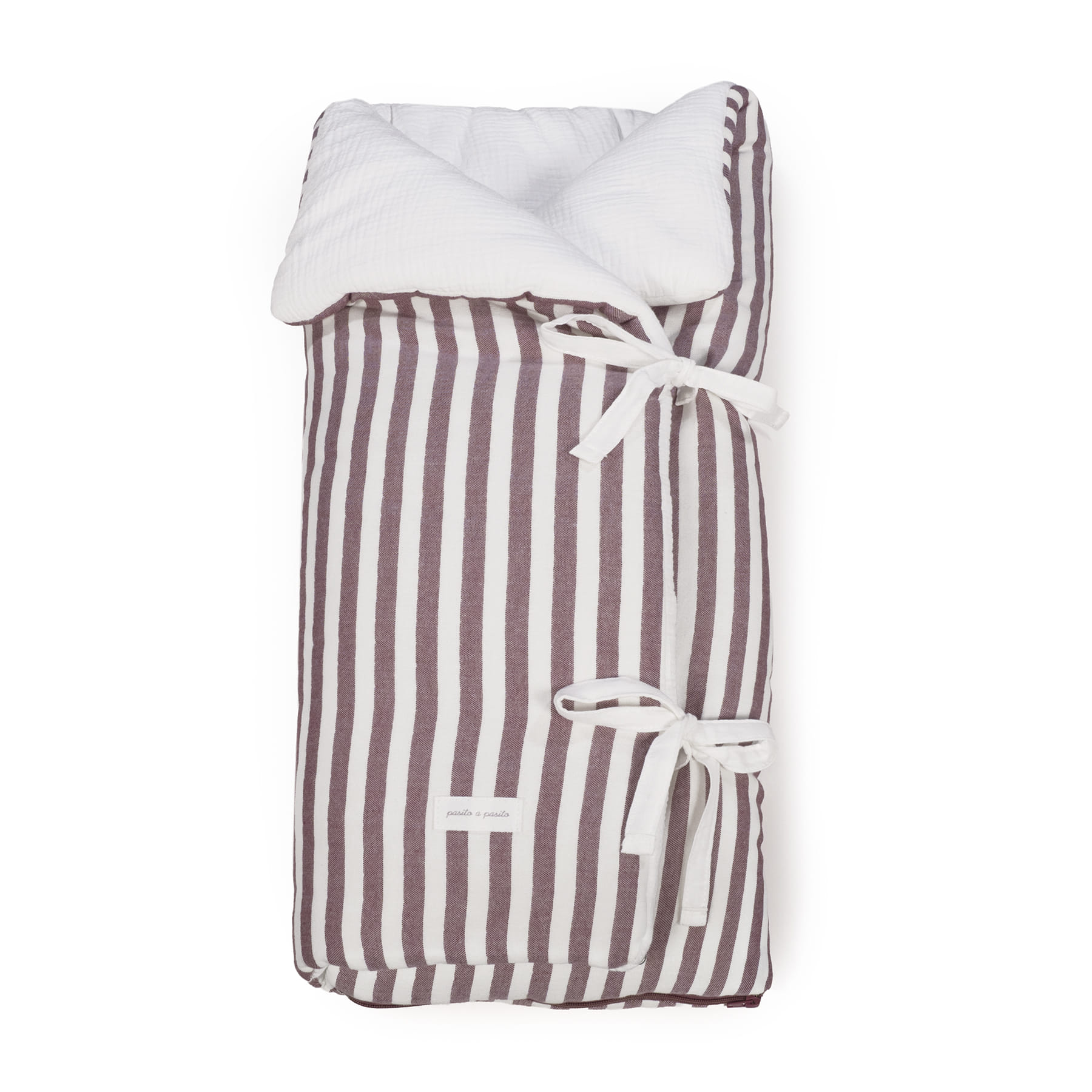 Saco arrullo o saco manta Cherry Rayas de Pasito a pasito. Está fabricado con una suave muselina de flores estampada 100% algodón en el exterior y muselina lisa en el interior de 70% bambú y 30% algodón. Ideal para los primeros dias del bebé. Es perfecto para los primeros paseos en el capazo. Se convierte en una manta para la cuna. Practico cierre tipo sobre con lazos y cierre con cremallera en la parte inferior en los pies para que el bebé esté abrigado. Gran calidad y mucho estilo.