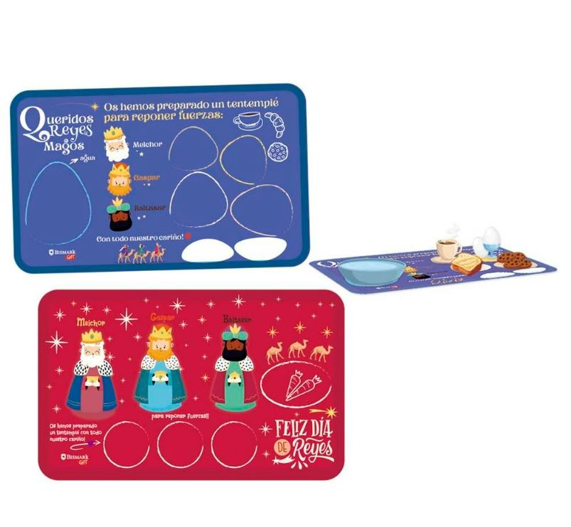 La bandeja metálica para Reyes Magos es ideal para mantener viva la magia de la Navidad, esta bandeja incluye áreas marcadas para dejar comida y bebida a los Reyes y tentempiés para los camellos.