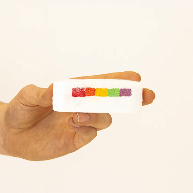 Flota suavemente la Bomba de baño rainbow en tu bañera y observa cómo libera sus colores del arcoíris ocultos.