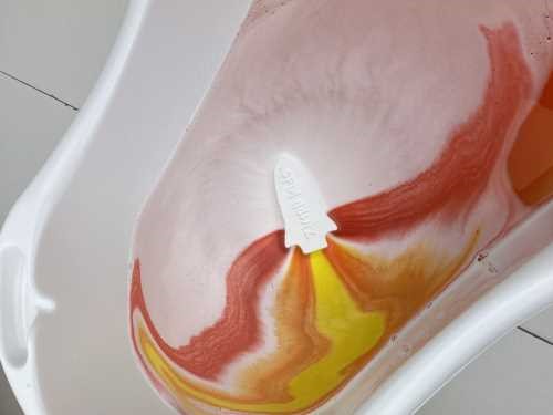 Flota suavemente la Bomba de baño Cohete en tu bañera y observa cómo libera sus colores de fuego.