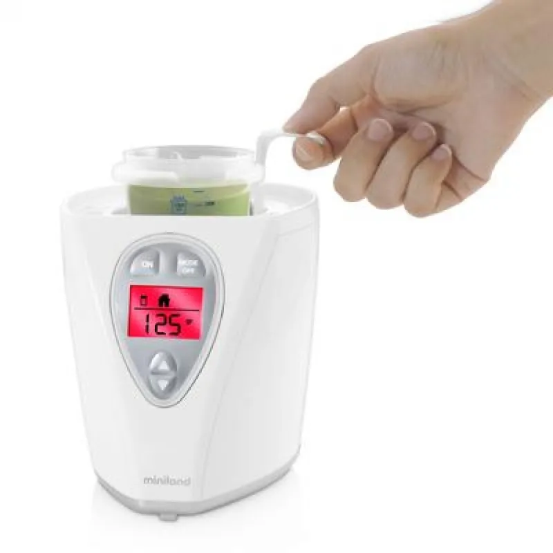 - Independientemente del tamaño y temperatura del biberón o tarrito, los papás solamente tendrán que añadir agua hasta el nivel indicado en el propio aparato.