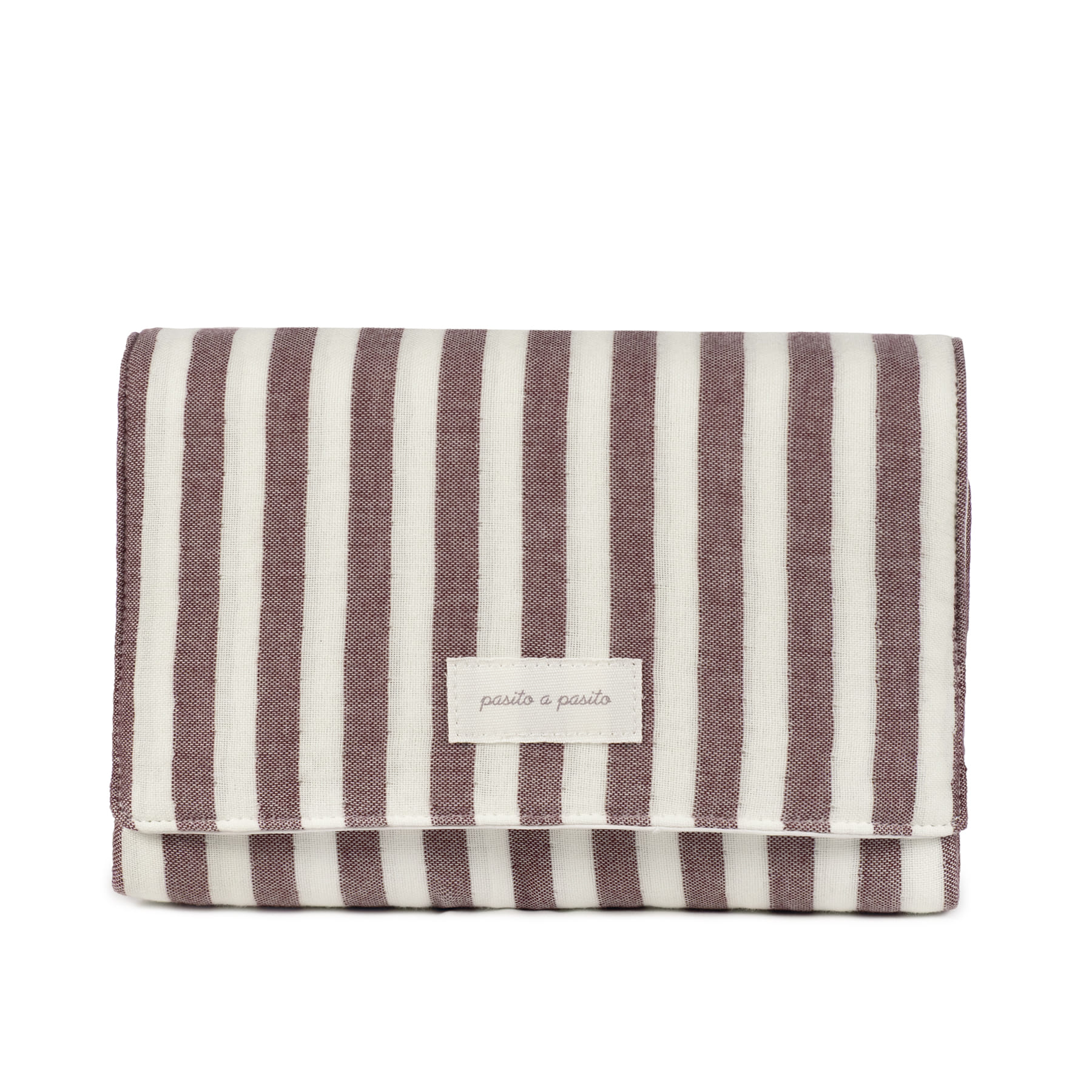El cambiador para bebé Cherry Rayas de Pasito a pasito elaborado elaborado en algodón 100% con un delicado tejifo de rayas, es un modelo muy cómodo, práctico y fácil de transportar. Un patrón especialmente ideado para utilizarlo cuando necesites cambiar a tu bebé. Es plegable para facilitar su trasladarlo a todos lados. Es un diseño tan elegante como funcional, porque se presenta en formato plegado para hacerlo portátil.