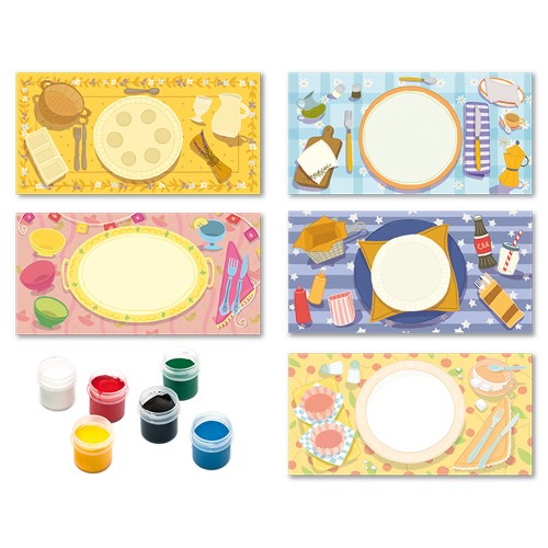 Un set creativo para experimentar pintando con los dedos de forma segura. El juego incluye 12 hojas grandes ilustradas y pintura de dedos de máxima calidad, apta para niños y niñas a partir de 2 años. Los/las peques pueden experimentar con los colores pintando directamente con sus manos, mientras decoran distintos platos que viene ya ilustrados en distintos manteles de papel