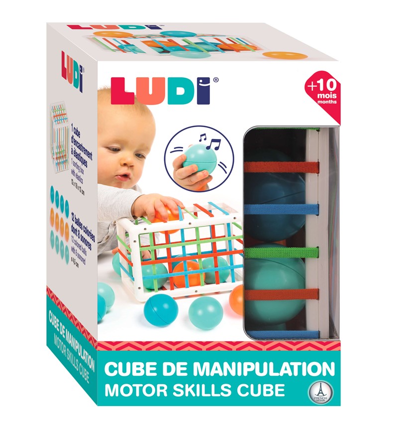 ¡Un juguete de manipulación realmente extraordinario! Una forma de caja de plástico con lados hechos de tiras elásticas de colores: en su interior hay 12 bolitas de colores brillantes que hacen un ruido divertido. A los más pequeños les encanta empujar las bolas dentro de la caja a través del elástico de color y luego intentar sacarlas de nuevo.