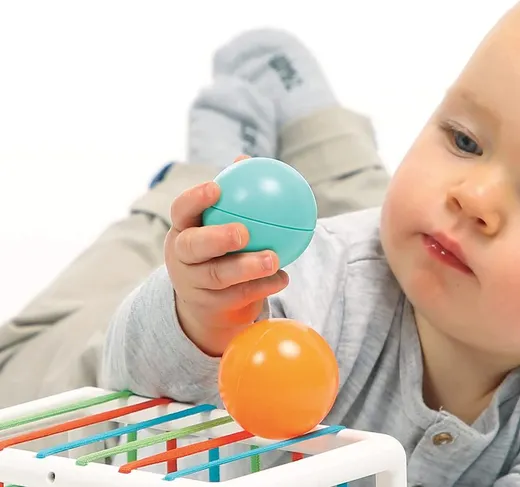 Este inusual juguete de manipulación se basa en el aprendizaje a través de la experiencia. ¡Meter todas las bolas en la caja es muy gratificante!