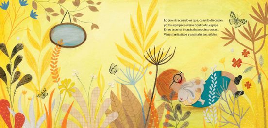 En la habitación del protagonista, en sus dos casas, hay un espejo mágico. Y en el centro del libro las historias se unirán.