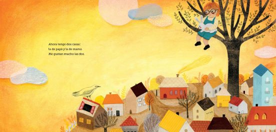 Este libro tiene dos historias. Puedes abrir el libro por la parte de “la casa de papá” o la de “la casa de mamá”.
