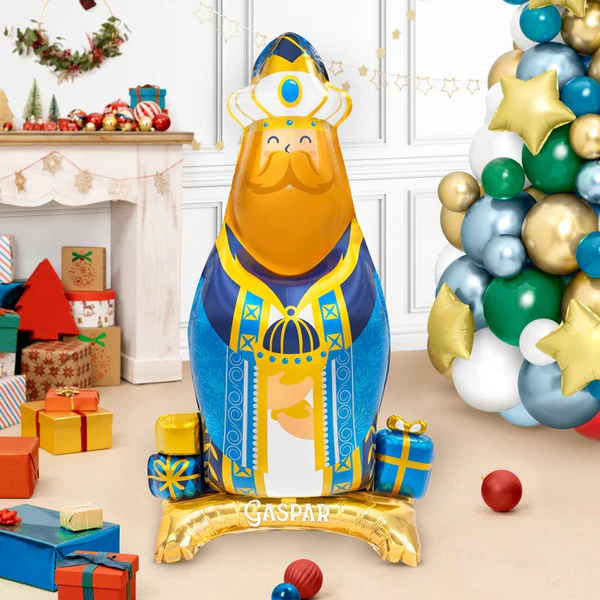 Queridos Reyes Magos, seré breve: ¡quiero todo! Este setglobofoil de pie del reymago Baltasar es ideal para decorar una noche de Reyes llena de magia.