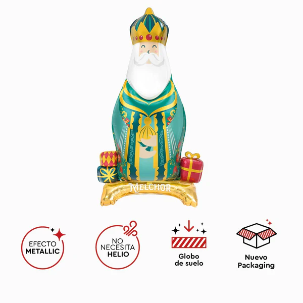 Queridos Reyes Magos, seré breve: ¡quiero todo! Este setglobofoil de pie del reymago Baltasar es ideal para decorar una noche de Reyes llena de magia.