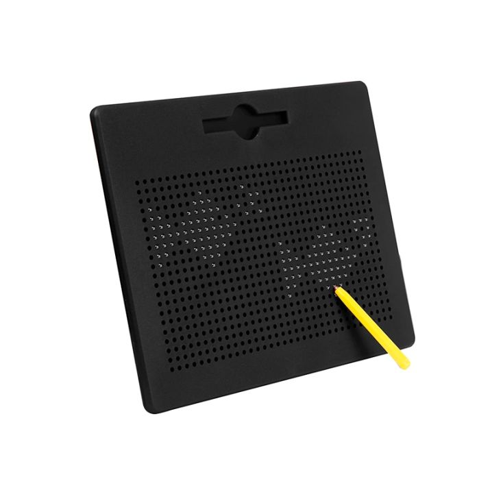 El lápiz magnético atrae a las pequeñas bolitas metálicas del interior del tablero, que irán apareciendo en la superficie.