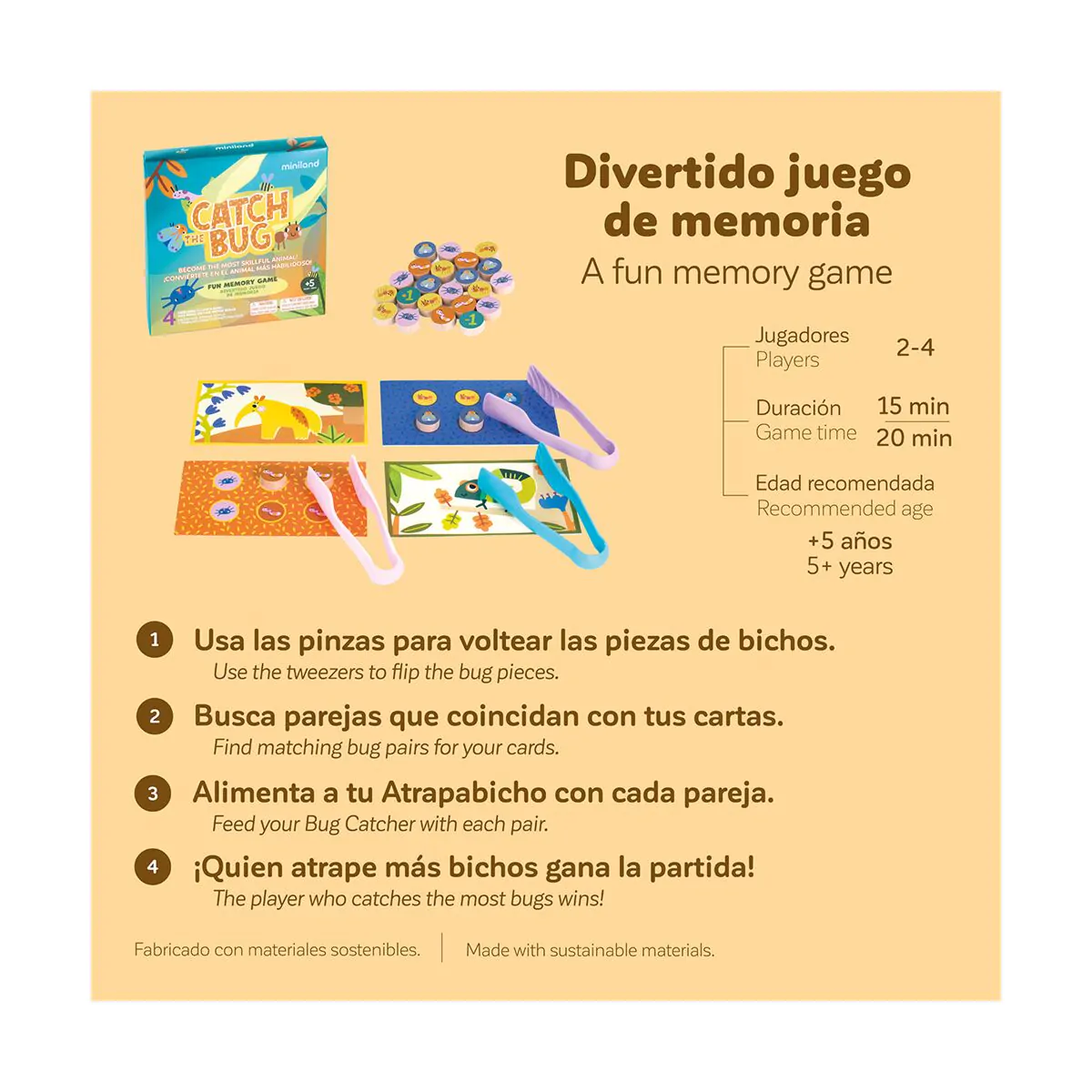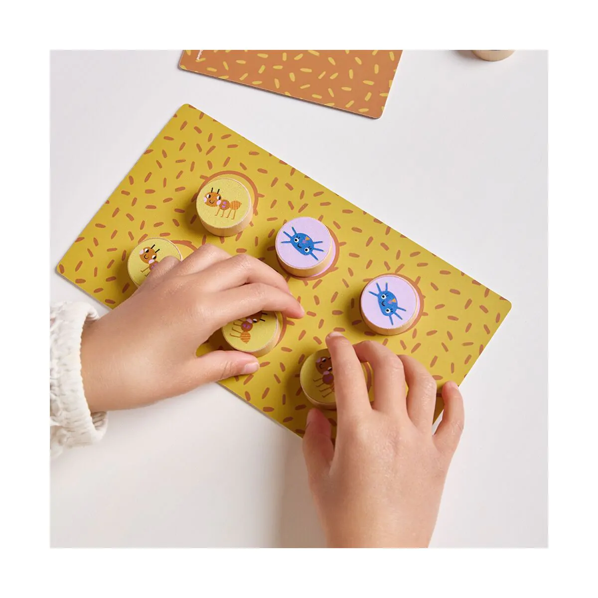 Con pinzas, descubre y empareja bichos de madera según los gustos del animal que te toque en la carte. Fabricado con materiales sostenibles.