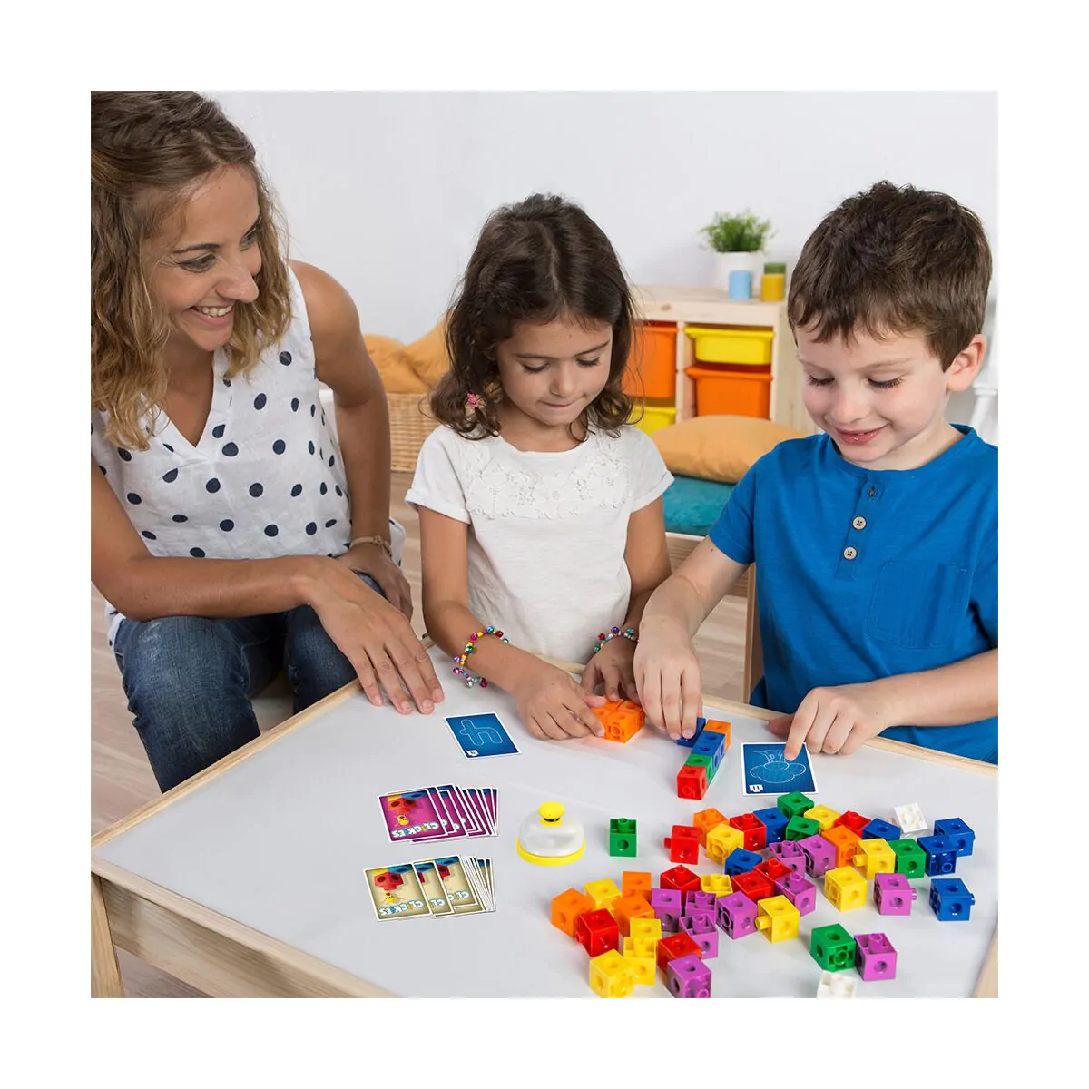 Contenido: 1 campana, 54 cartas, 48 policubos, 6 folletos de reglas, 1 caja y 1 bandeja interior. Recomendado para mayores de 6 años, Clickies es perfecto para disfrutar en familia o entre amigos, combinando aprendizaje y diversión en cada partida.
