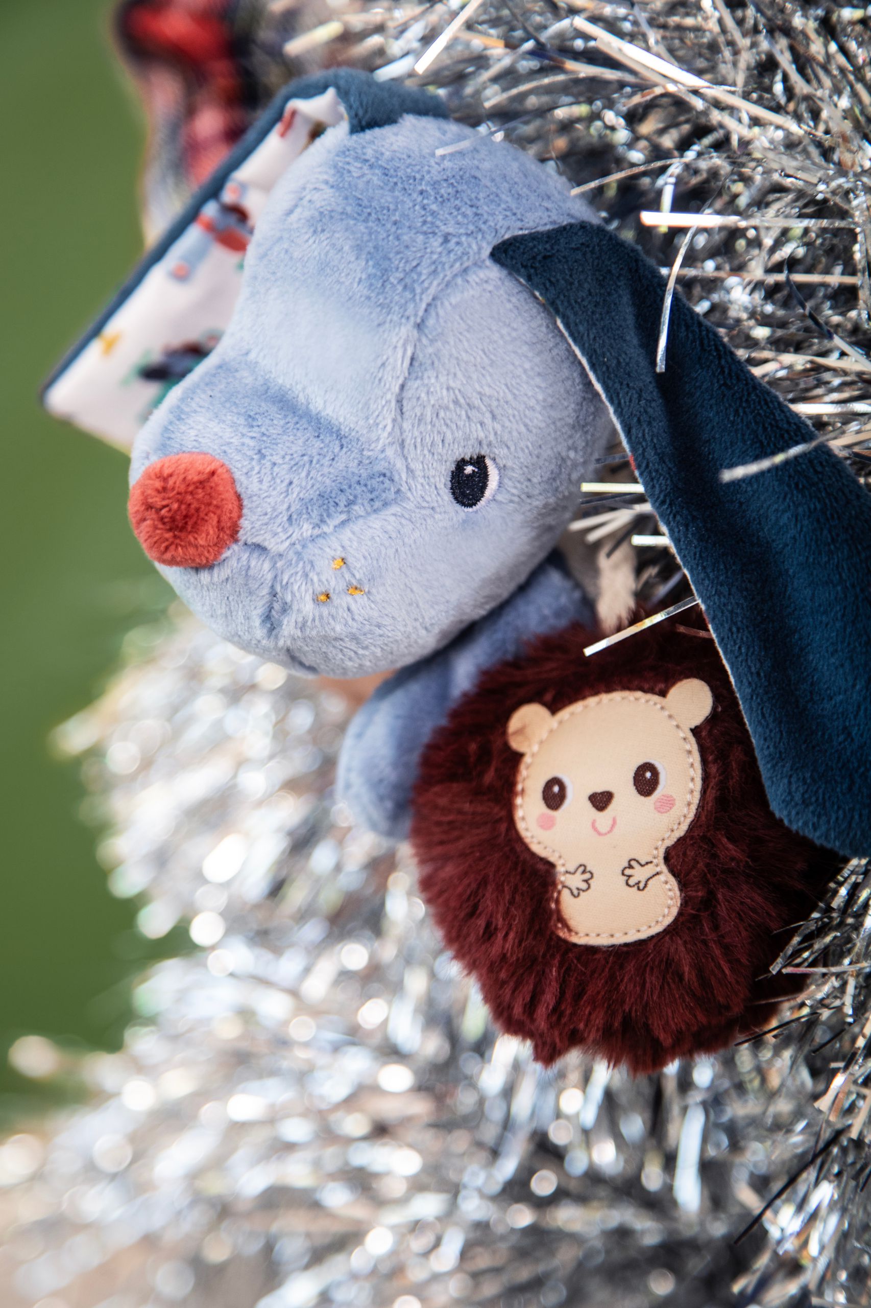 Su amigo de tela añade una sorpresa con un sonido crujiente.