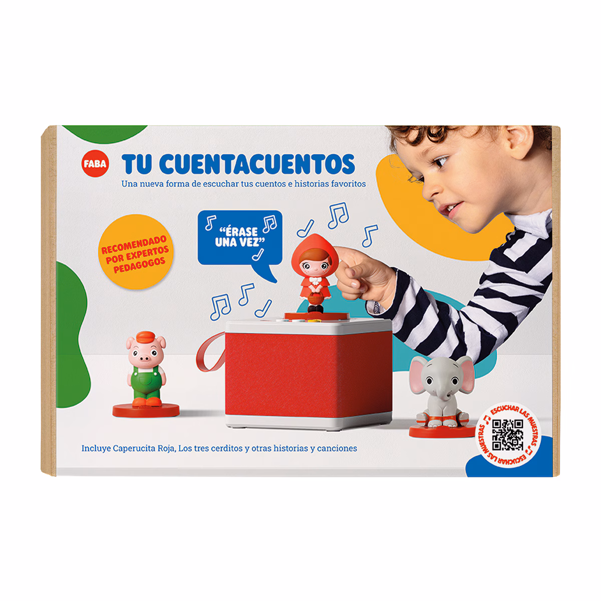 Set cuentacuentos FABA que incluye 1 altavoz y 3 figuritas audio: Caperucita Roja, Los Tres Cerditos y Ele el elfante con algunas de las historias y canciones más hermosas del mundo FABA, que transportarán a cada niño y niña al universo de los cuentos de hadas, donde el “Érase una vez” tiene el poder de durar para siempre.