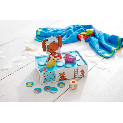Juego en el que los jugadores/as deben encontrar lo que se esconcde en la bañera del Conejito Burbuja y para ello, por turnos tiran el dado y a partir del resultado deben dar la vuelta a una de las fichas de la bañera en busca del objeto en cuestión. Incluye distintas variantes de juego para fomentar el lenguaje y la memoria.
