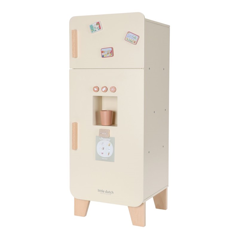 ¡Mantén tus alimentos frescos en esta bonita nevera de madera! La nevera cuenta con un práctico congelador con máquina para hacer cubitos de hielo y amplio espacio para guardar los alimentos de forma ordenada, incluyendo un porta huevos especial. Perfecto para que el juego de simulación en la cocina sea aún más realista. Con esta nevera, los niños se divertirán durante horas mientras aprenden sobre alimentos y su almacenamiento. ¡Un complemento maravilloso para cualquier cocina de juguete!