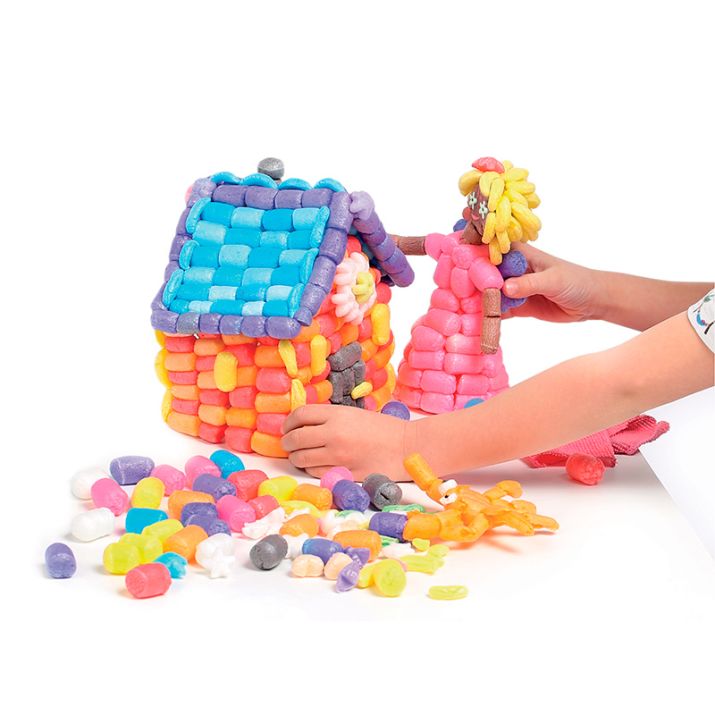 De esta forma, los niños podrán construir todo lo que se les ocurra: personajes, animales, edificios… Además, podrán utilizar los copos para aprender los colores, practicar el conteo, clasificar, experimentar las texturas…