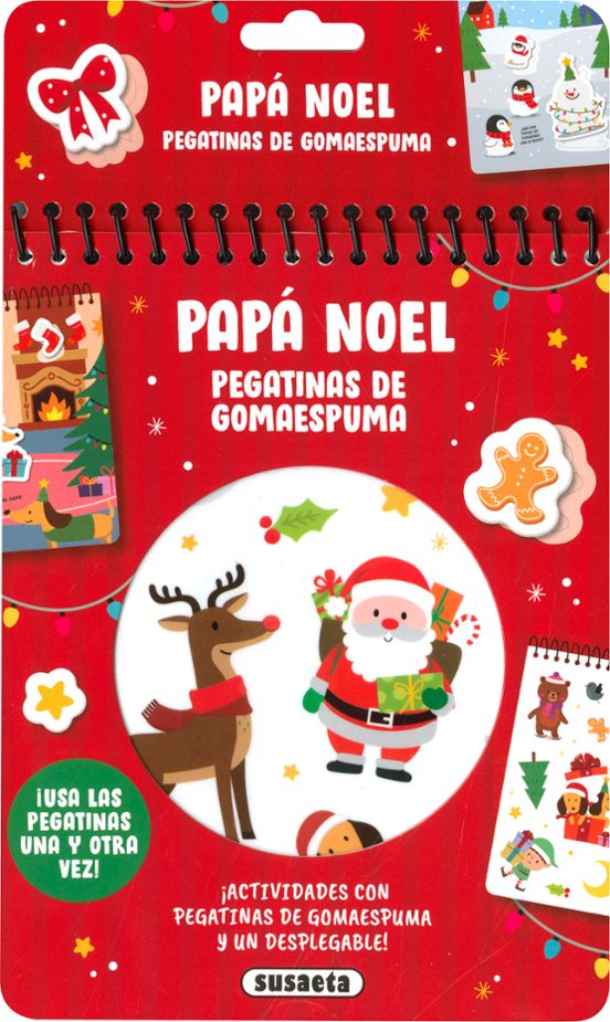 Cuaderno de actividades con pegatinas de gomaespuma reutilizables para pasar horas de diversión. Pégalas en las hojas para completar las escenas navideñaso en cualquier superficie lisa.
