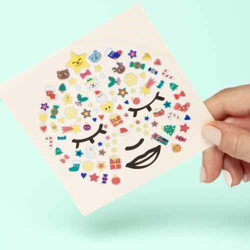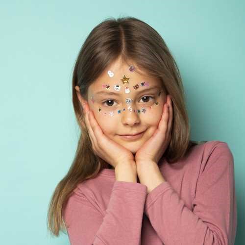 Vienen con 85 adhesivos para la cara que son fáciles de usar.