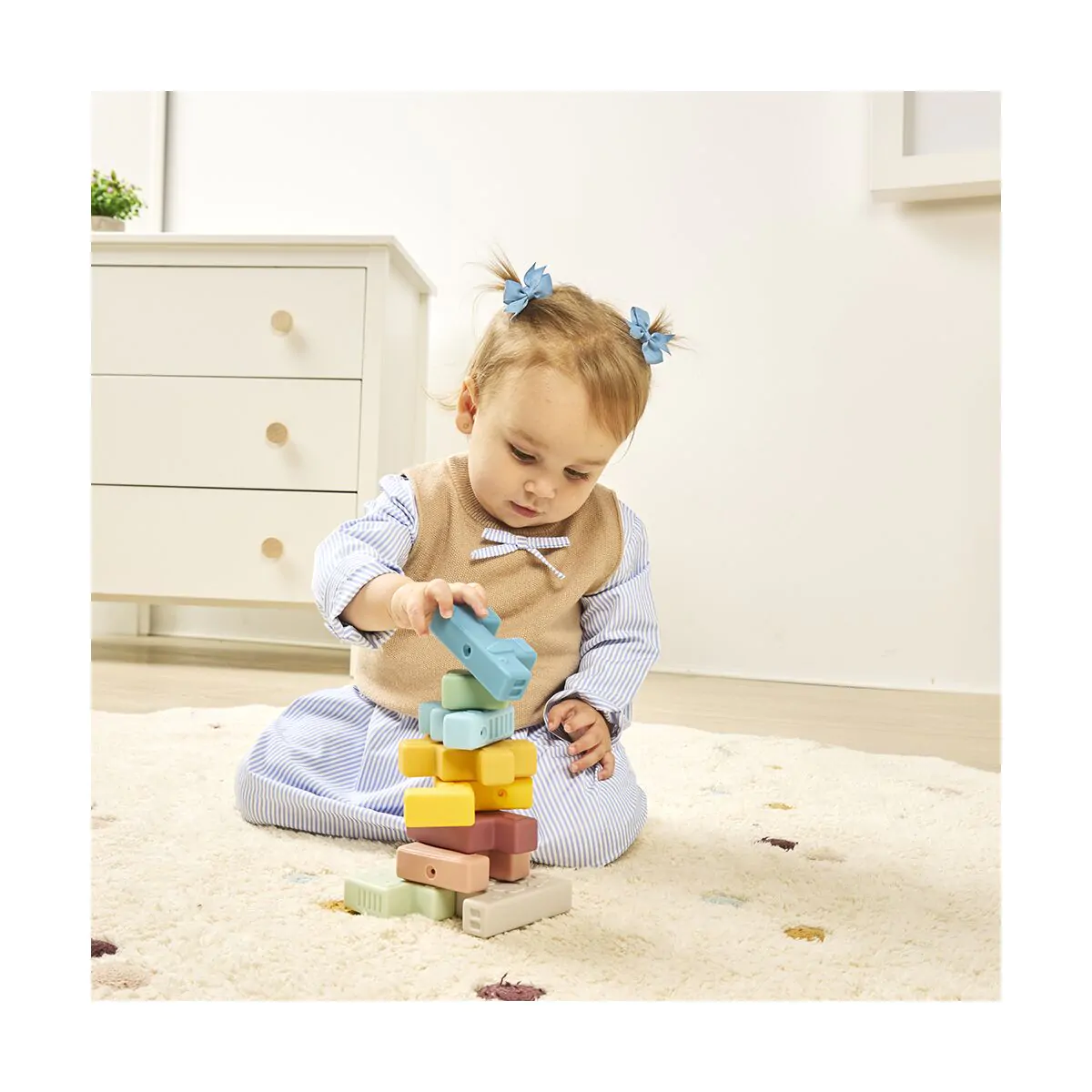 El diseño encajable ayuda a los bebés a mejorar su motricidad fina y la coordinación mientras se divierten.