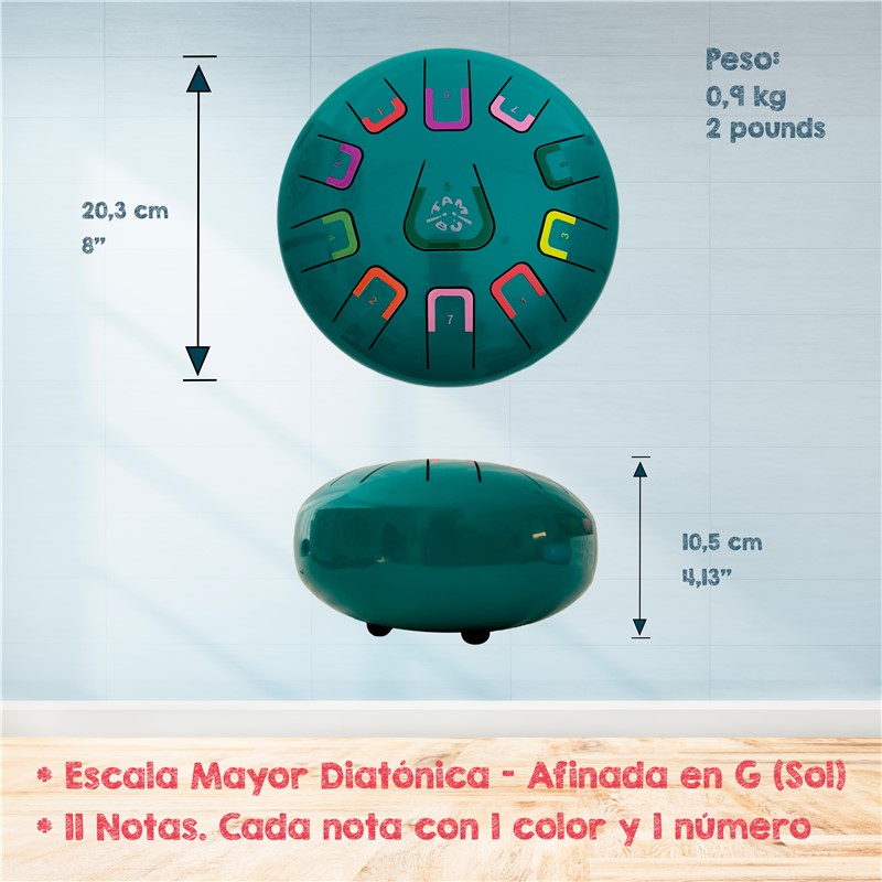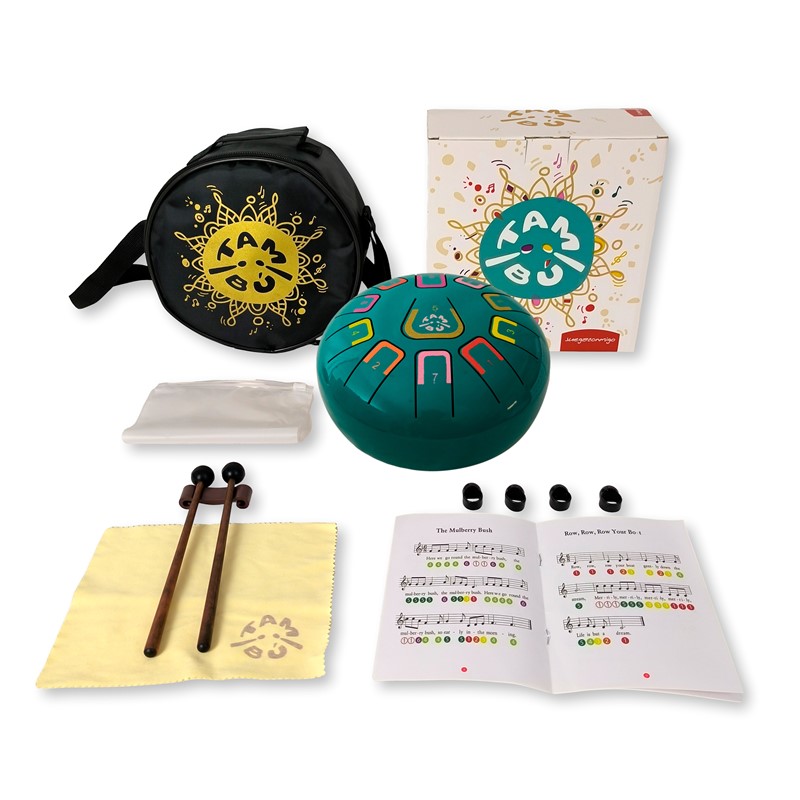 El TAMBÚ puede hacerse sonar de diferentes maneras. Viene acompañados de partituras en números y colores para aquellos que empiezan.