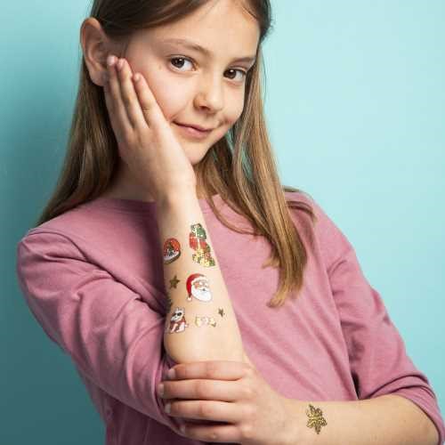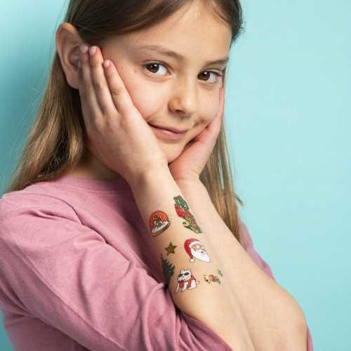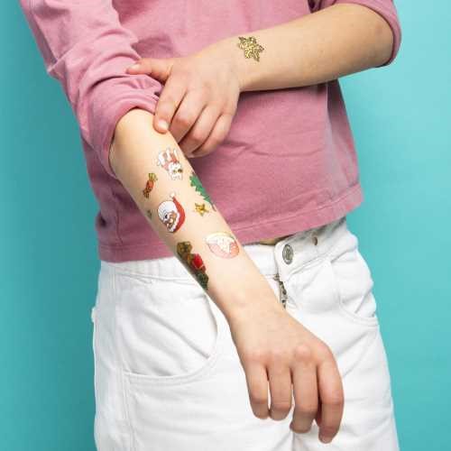 Fáciles de aplicar y dermatológicamente probados, estos tatuajes son seguros y divertidos para las celebraciones navideñas.